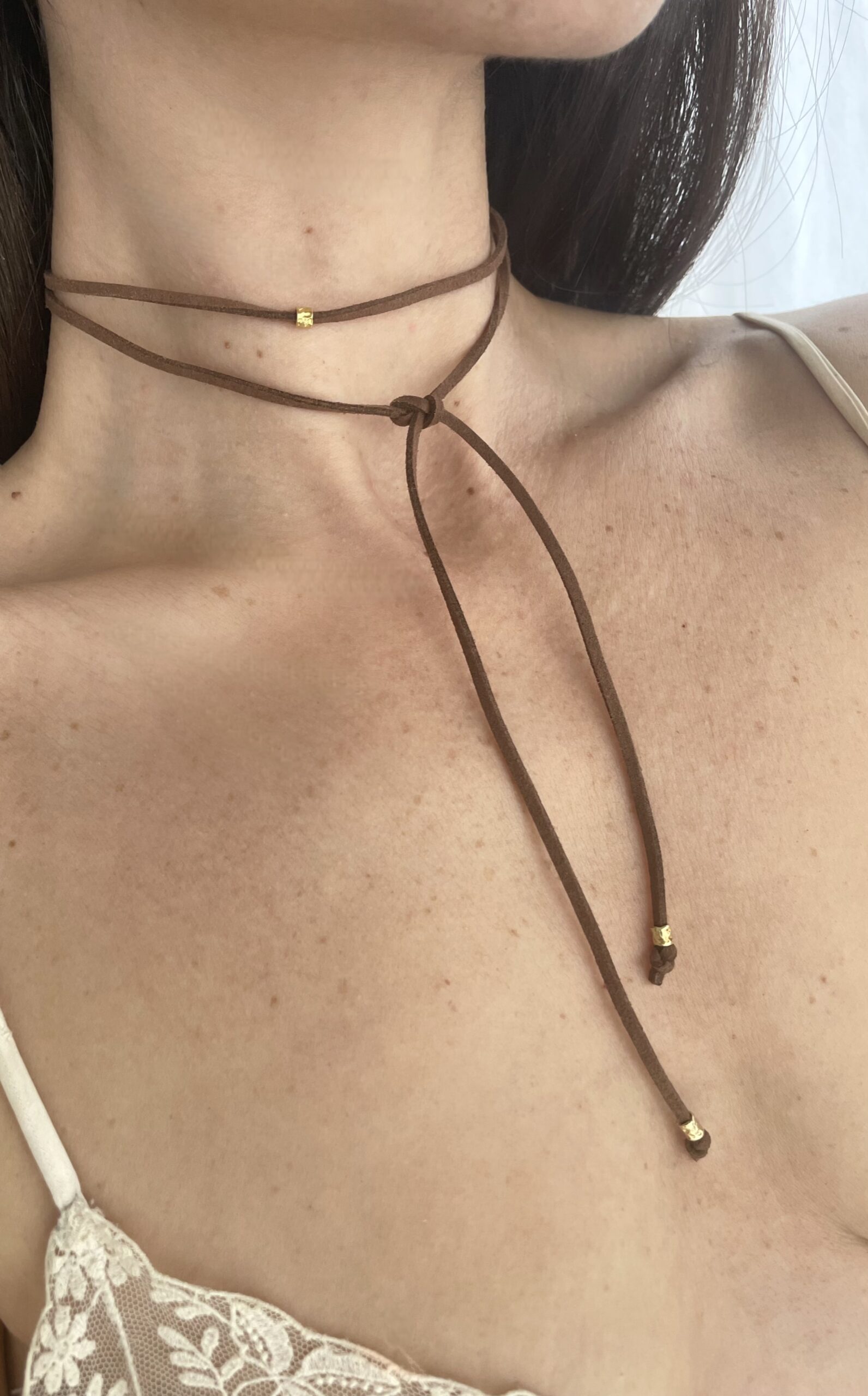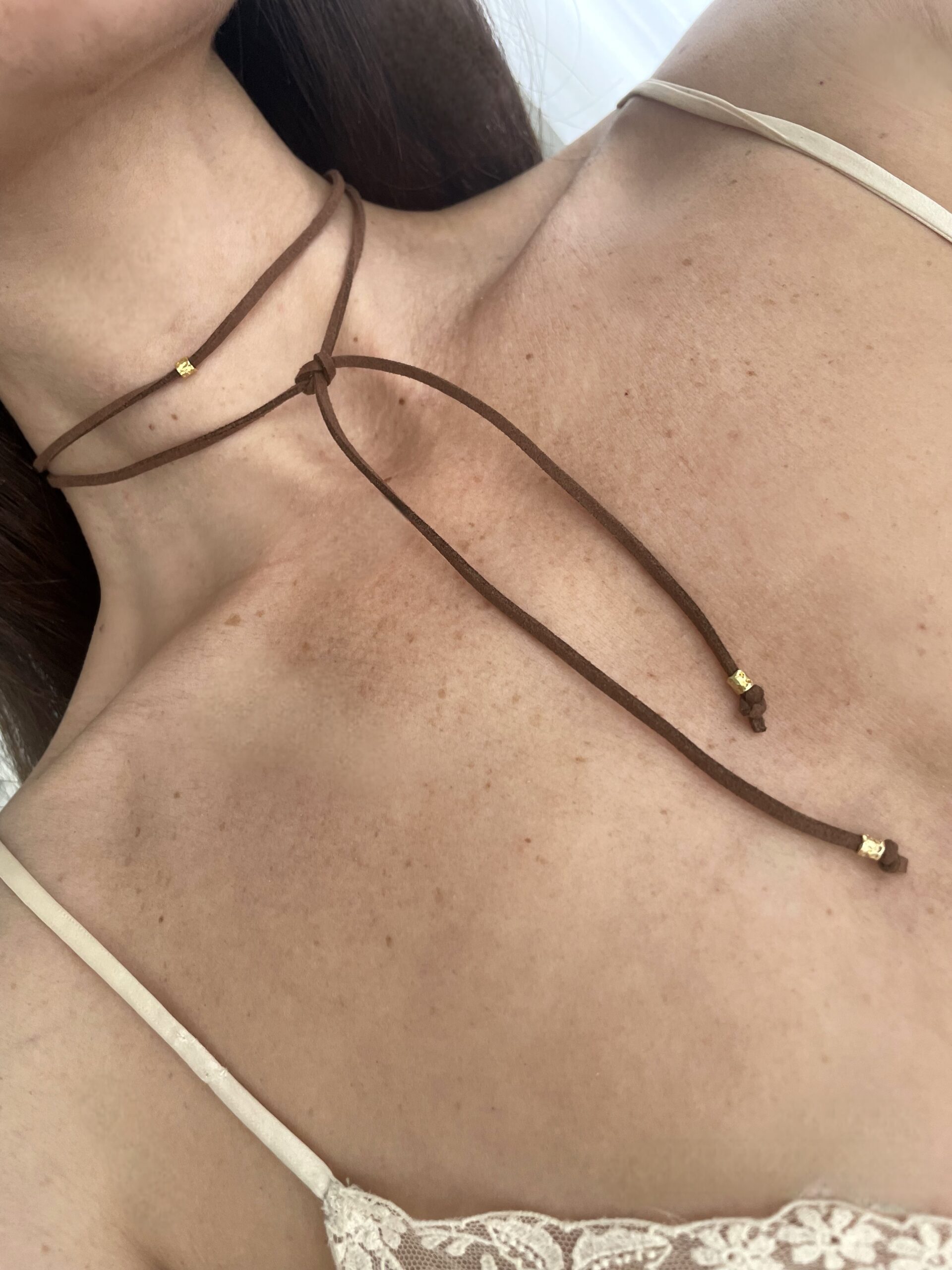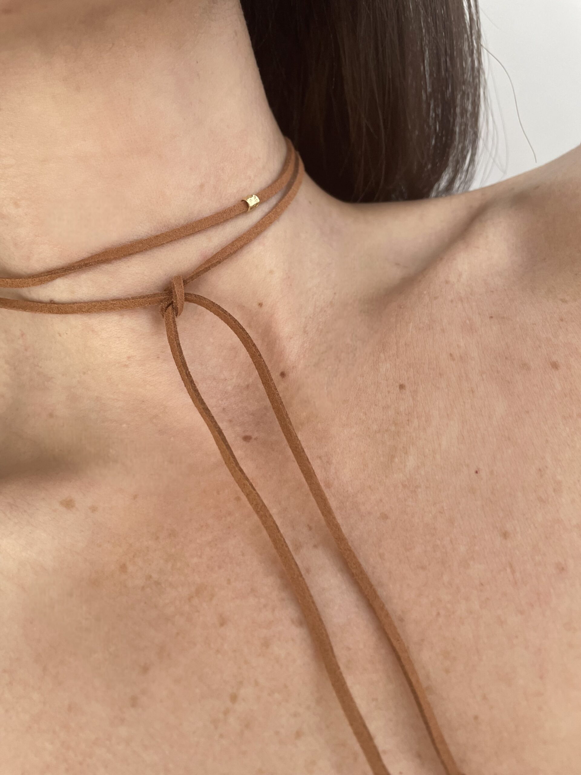 Choker in pelle con dettagli in argento 925 con bagno in oro 18ct